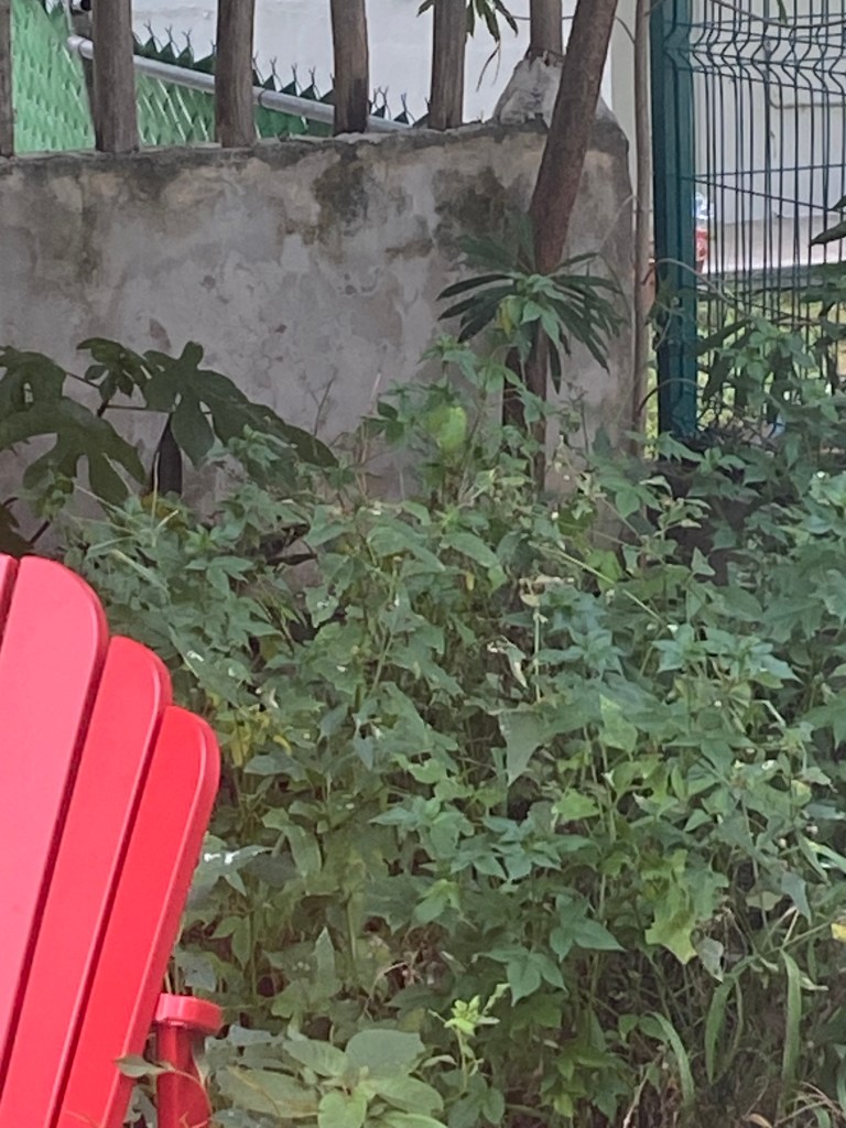 I’ve been working in the garden, I like the heat and it will be good when the jungle is tamed and the mosquitoes stop ruling the roost! There is a big tree, species unknown, but it shelters the garden and provides a habitat to unknown creatures. The neighbourhood is quiet and the garden backs onto someone’s courtyard. My bedroom window looks out on the same view. I only see the neighbours when it’s dark so our garden seems secluded. I’m looking forward to making a herb garden, and having somewhere to sit and read.