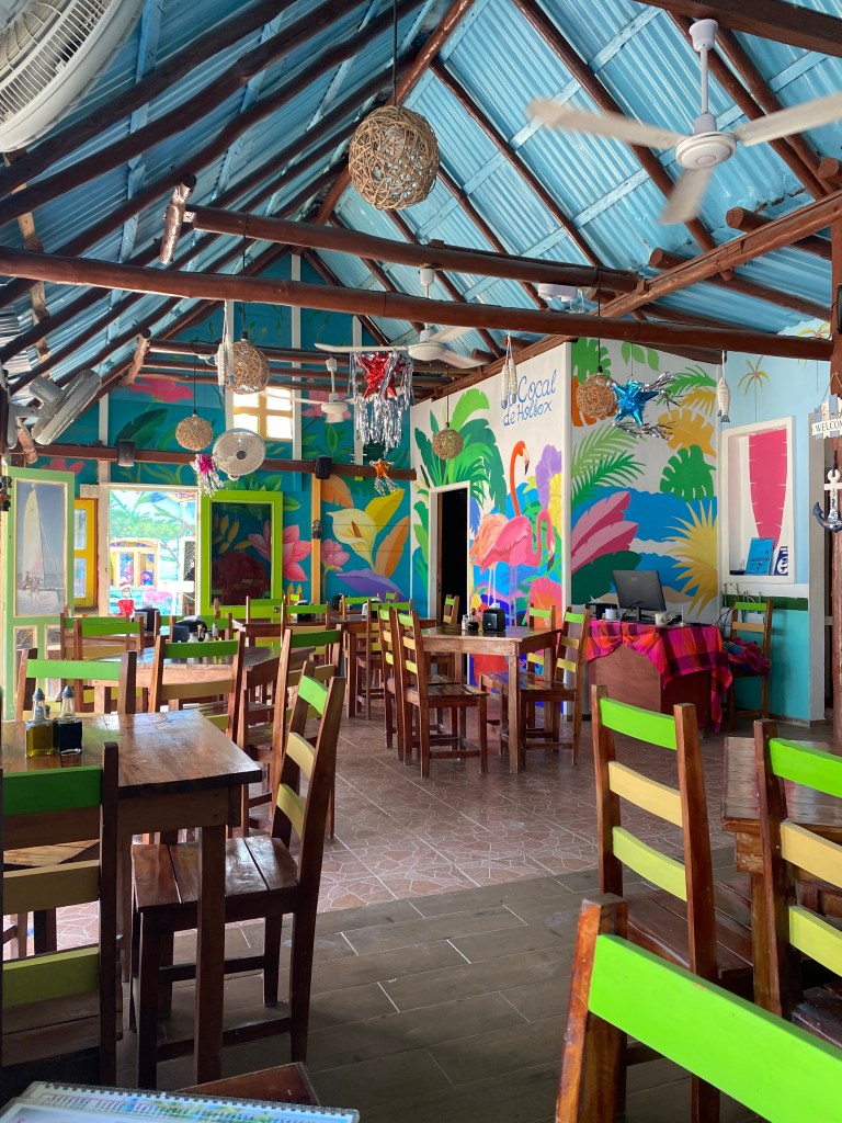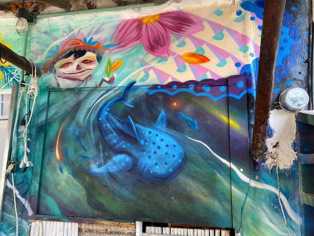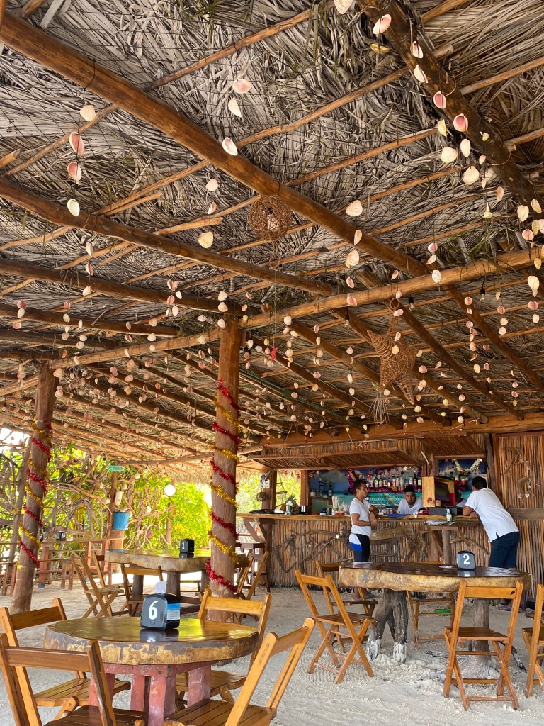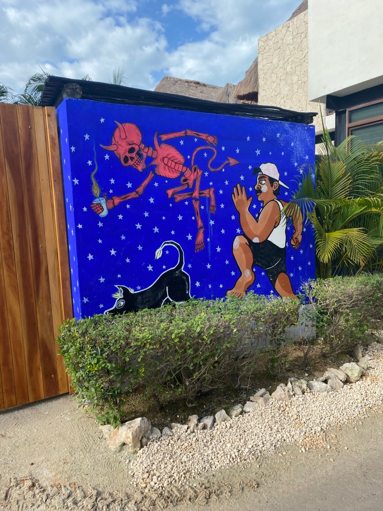 Despite having read about the island, I wasn’t expecting sand tracks for roads and a hundred golf carts careering around instead of cars. After leaving the ferry port there was a main road that siphoned tourists away from the ferry. We followed that, looking at all of the brightly colored buildings and street art and stopped for a drink to get our bearings and work out where the apartment we would be staying in was. Confident that the inhabited part of the island isn’t too big we stayed in the bar for a bit longer chatting to one of the guys who worked there. They served a Mexican beer that Ben had only had at home and he was excited to have it in Mexico.