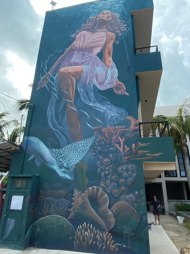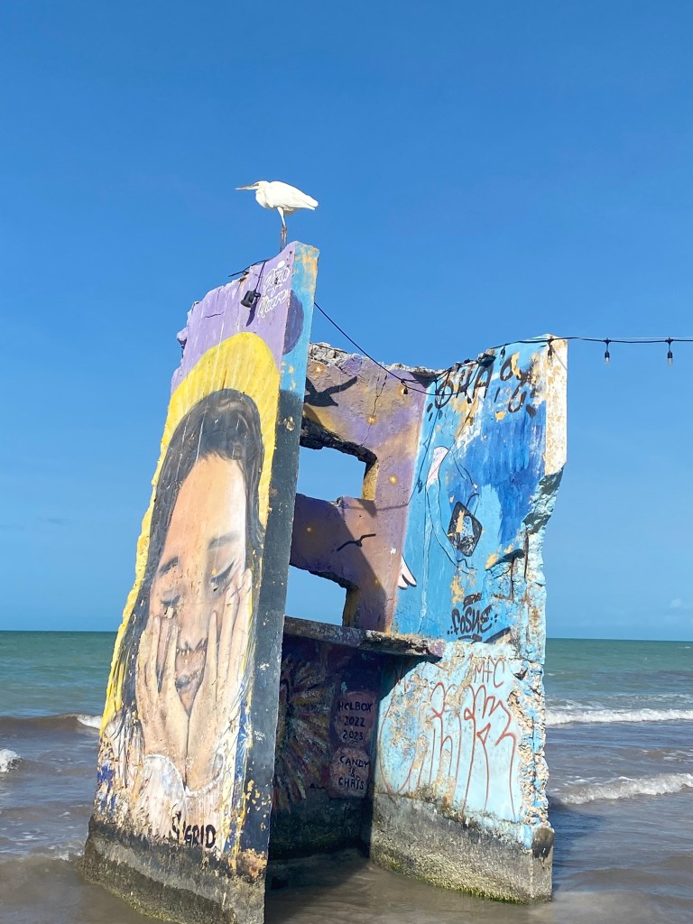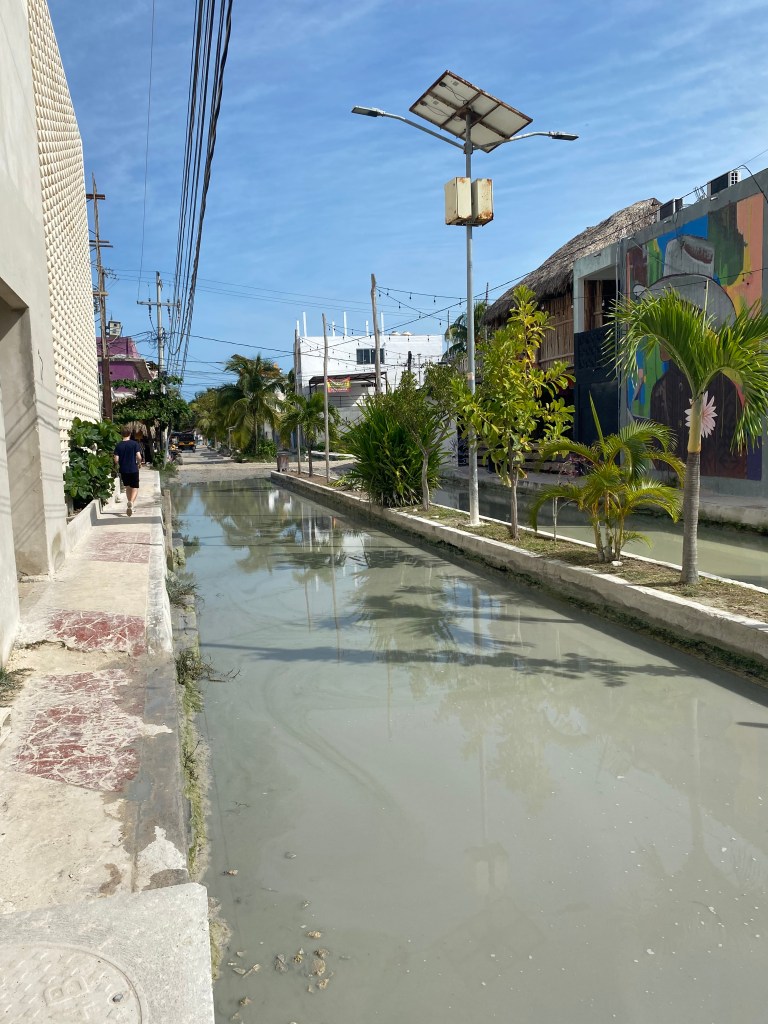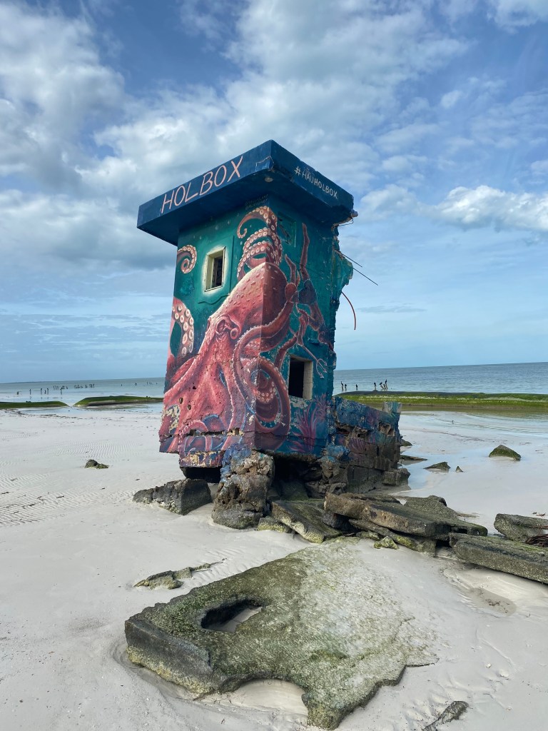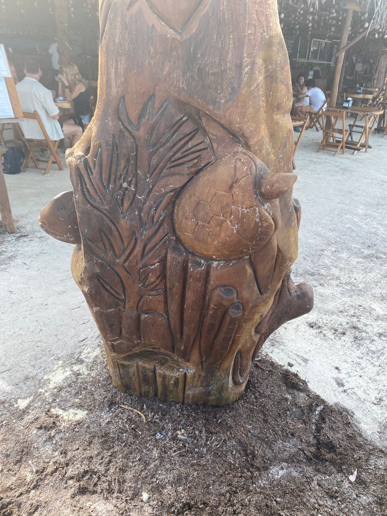 Despite having read about the island, I wasn’t expecting sand tracks for roads and a hundred golf carts careering around instead of cars. After leaving the ferry port there was a main road that siphoned tourists away from the ferry. We followed that, looking at all of the brightly colored buildings and street art and stopped for a drink to get our bearings and work out where the apartment we would be staying in was. Confident that the inhabited part of the island isn’t too big we stayed in the bar for a bit longer chatting to one of the guys who worked there. They served a Mexican beer that Ben had only had at home and he was excited to have it in Mexico.
