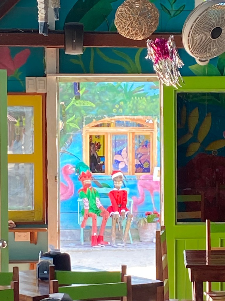 After a good nights sleep I was up excited for Christmas Eve and some exploration. We then saw the extent of the flooding but had some time to work out how best to navigate to get to the beach. The beaches are beautiful if a little full of influencers. We watched a young woman pose for a solid 20 minutes directing the guy who was with her on where to take photos of her. She would look at the phone pose in a different position and he would take more. There were a lot of very small bikinis, fake boobs and facial enhancements on women of all ages, and some men too. The beach was quieter near our hotel as we were slightly out of town so we walked for an hour just looking around before we turned into town and got some shopping. The town is small with some really lovely art shops as well as the normal touristy ones. We also found a little shop that just sold frozen meat. We picked up a couple of rib eyes some salad and a few other bits for tea. We chatted to locals and Ben got a lesson in making tortillas from some locals. It was a lovely day and we met lots of friendly people who pointed us towards the next thing to eat, drink and look at.